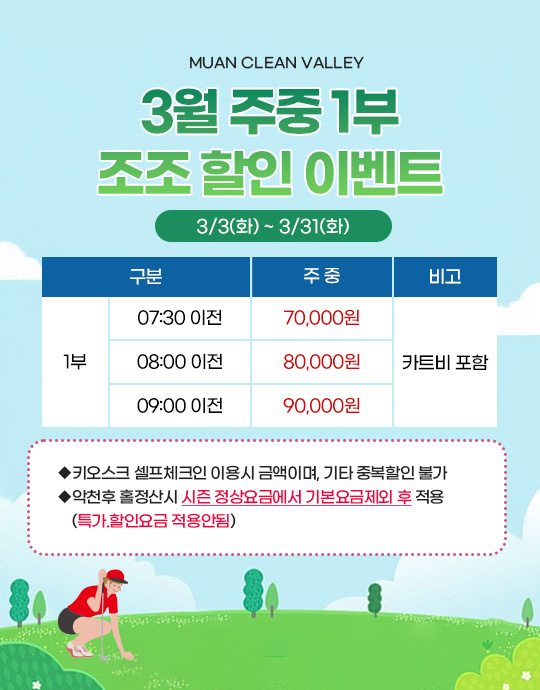 3월 주중 1부 조조 할인 이벤트