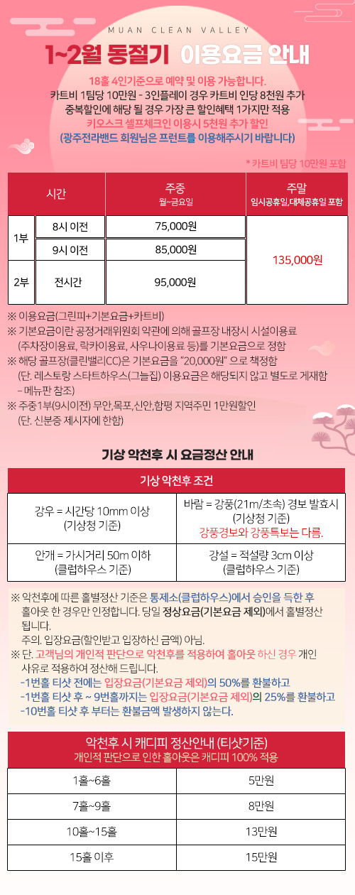 1~2월 동절기 이용요금 안내